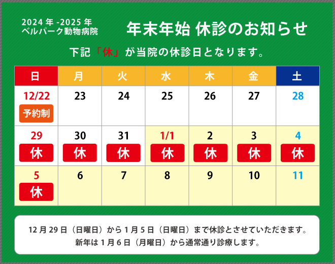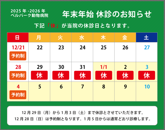 年末年始の休診日