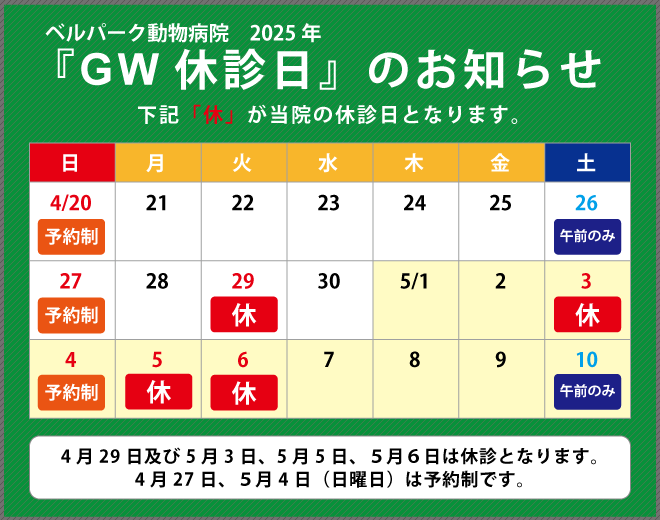2025 ゴールデンウィーク期間の休診予定